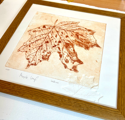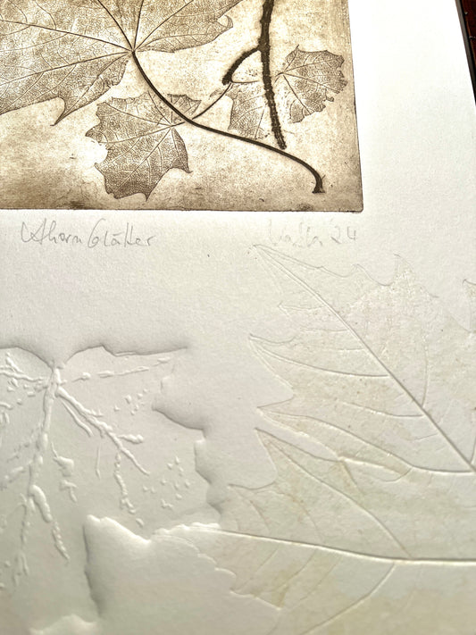 MAPLE - AHORN Originaldruckgrafik Radierung Vernis mou mit Prägungen im Rahmen 30x40 cm