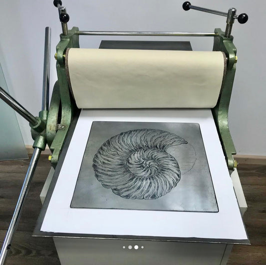 _AMMONIT Originaldruckgrafik Radierung Aquatinta 50x50 cm im Rahmen mit Passepartout