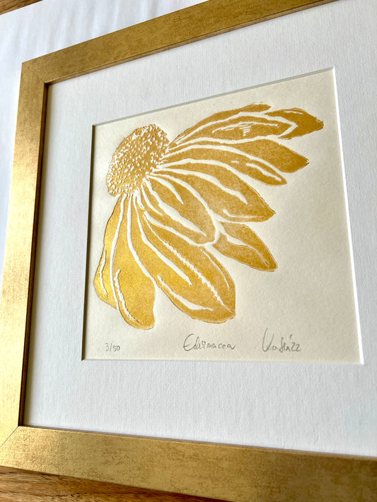 x ECHINACEA Originaldruckgrafik Gold-Reliefdruck im Passepartout 30x30 cm