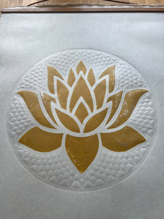 _LOTUS FLOWER Originaldruckgrafik auf Himalaya Papier 70 x 100 cm, Teakholz Aufhängung