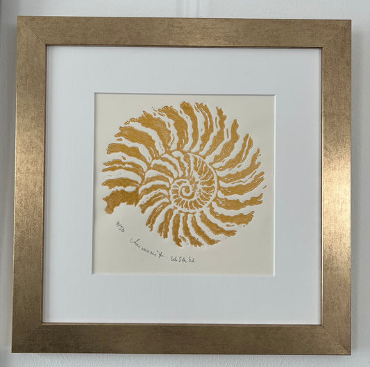 _AMMONIT Originaldruckgrafik Gold-Reliefdruck im Passepartout 30 x 30 cm
