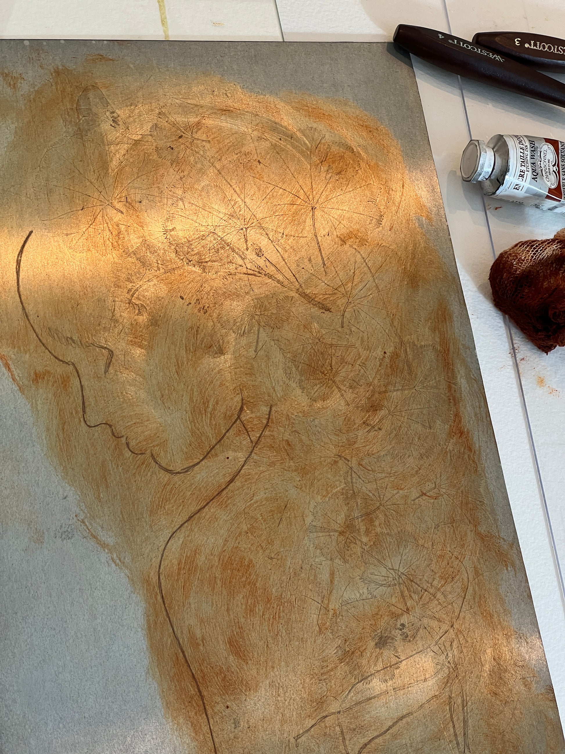 DIE HEILERIN - FRAUENMANTEL Originaldruckgrafik Radierung Vernis mou 30x40 cm