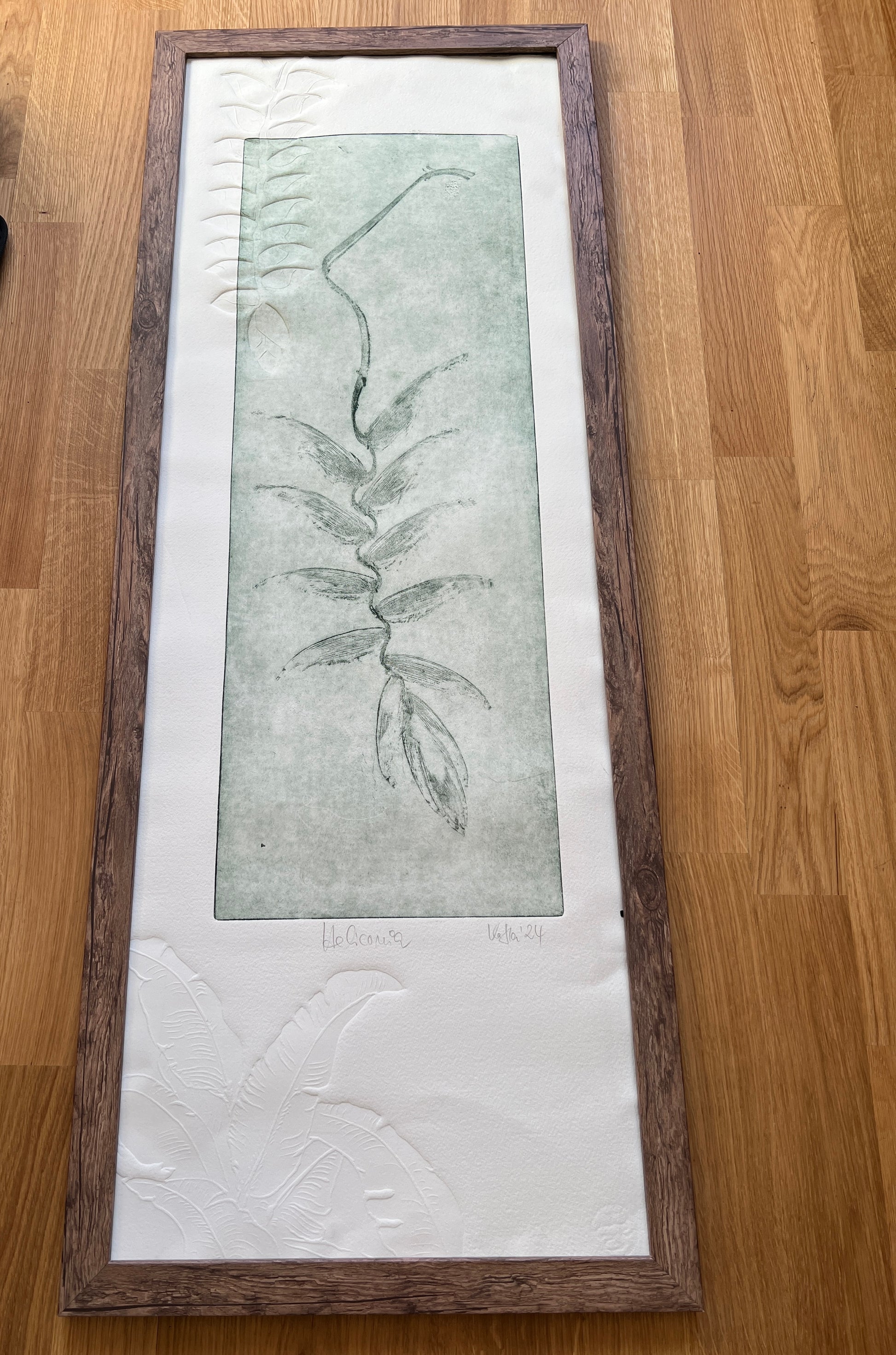 HELICONIA Originaldruckgrafik Radierung Vernis mou im Rahmen 35x100 cm mit zwei Blindprägungen